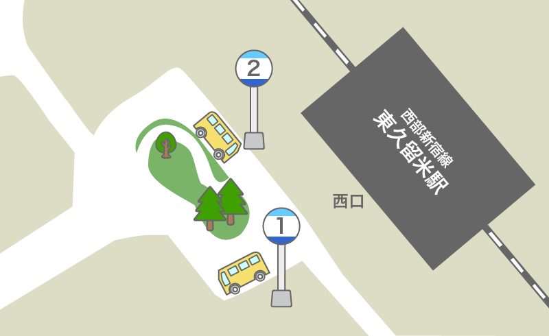 バス停留所【西武バス】 ※下記の地図をクリックすると、拡大されます。 西武新宿線「花小金井駅」北口よりバスをご利用の方(15~20分乗車) バス停3より以下のバスへ乗車、いずれも「団地センター」バス停で下車、徒歩2分 <花02>滝山営業所行き <花01>久留米西団地行き <清03-1>清瀬駅行き バス停3より以下のバスへ乗車、いずれも「団地センター」バス停で下車、徒歩2分 <花02>滝山営業所行き <花01>久留米西団地行き <清03-1>清瀬駅行き 西武池袋線「東久留米駅」西口よりバス利用(15~20分乗車) バス停1より「錦城高校経由武蔵小金井駅行き」<武21>利用、「団地中央」バス停下車、徒歩2分 バス停2より「前沢経由滝山営業所行き」利用、「団地センター」バス停下車、徒歩2分 バス停1より「錦城高校経由武蔵小金井駅行き」<武21>利用、「団地中央」バス停下車、徒歩2分 バス停2より「前沢経由滝山営業所行き」利用、「団地センター」バス停下車、徒歩2分 JR中央線「武蔵小金井駅」北口よりバス利用(20~30分乗車) バス停3より「滝山営業所行き」 「久留米西団地行き」利用、 「団地センター」バス停下車、 徒歩2分 バス停3より「東久留米駅行き」利用、 「団地中央」バス停下車、 徒歩2分 バス停3より「滝山営業所行き」 「久留米西団地行き」利用、 「団地センター」バス停下車、 徒歩2分 バス停3より「東久留米駅行き」利用、 「団地中央」バス停下車、 徒歩2分
