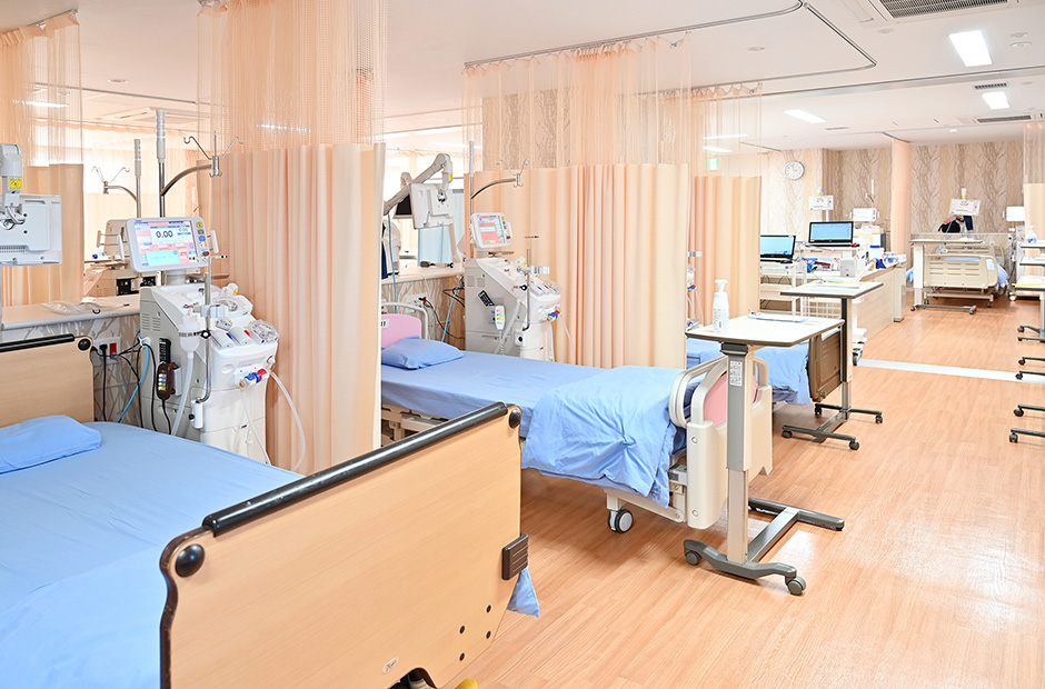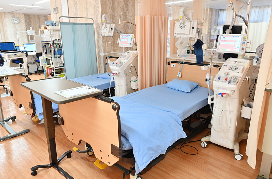非常電源と貯水槽を備え、災害時でも透析治療を受けられるシステムを構築しております。